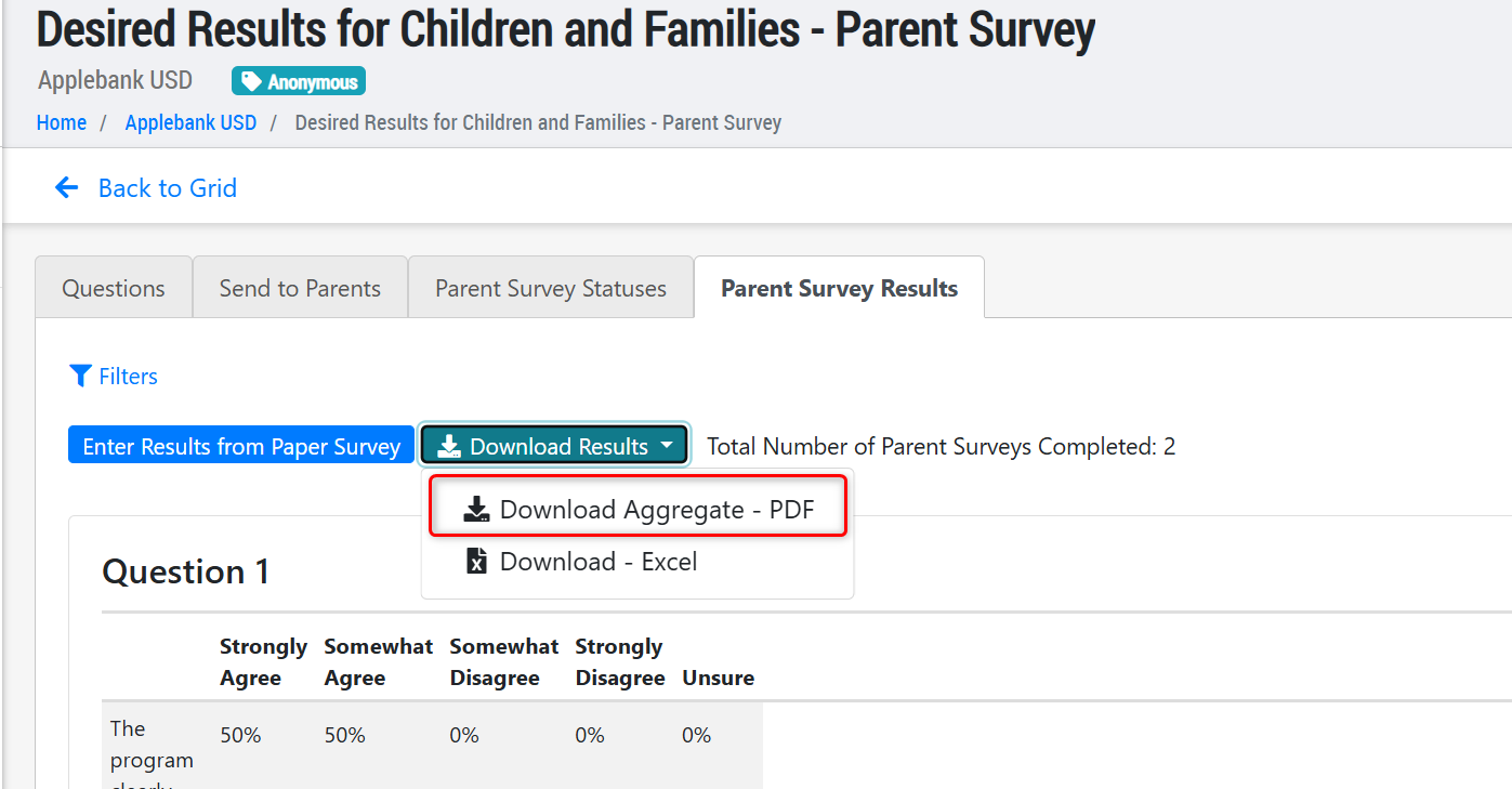 - In addition to adding the DDRDP 2025 survey, we also implemented several new tools to make the Parent Survey feature more robust and user-friendly, including the following: