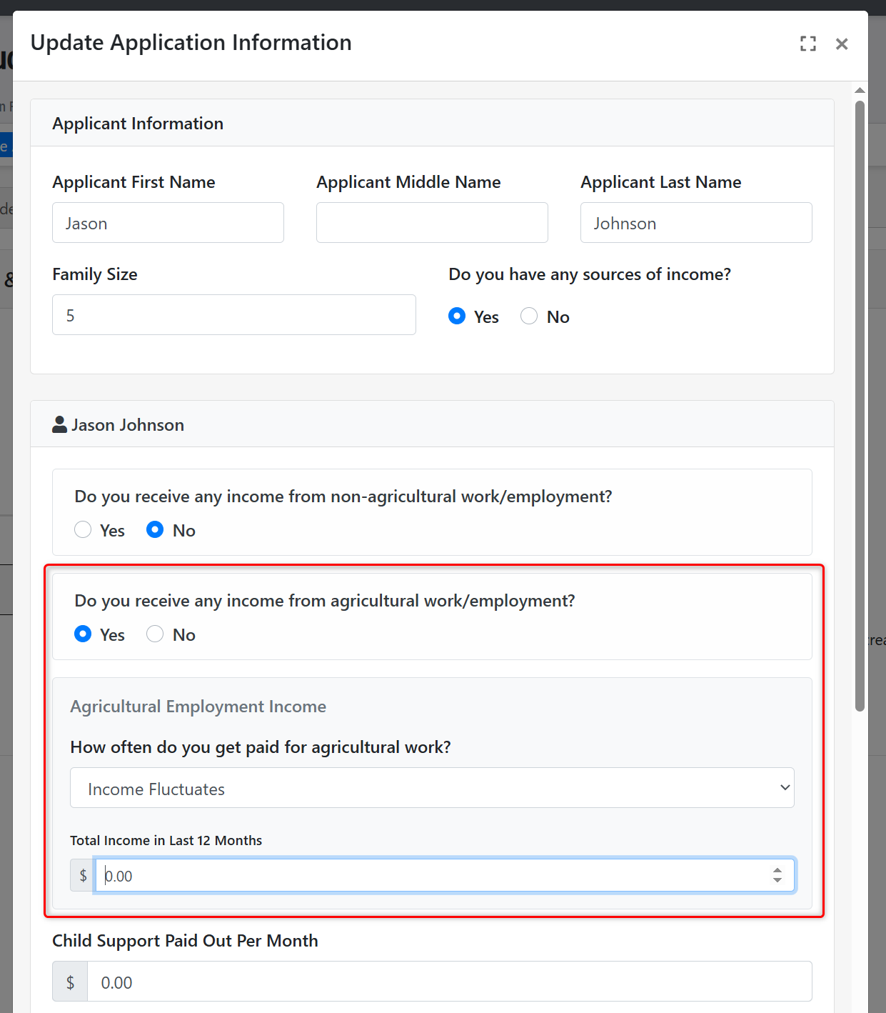 - Immediately upon saving your change to this setting, any family applying to that program year will be presented with the opportunity to enter both regular and agricultural income information that they receive.