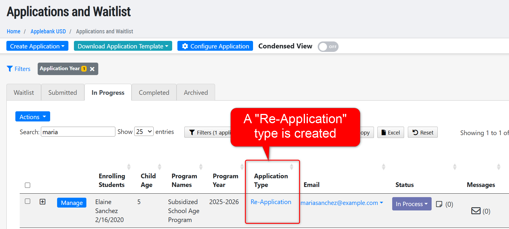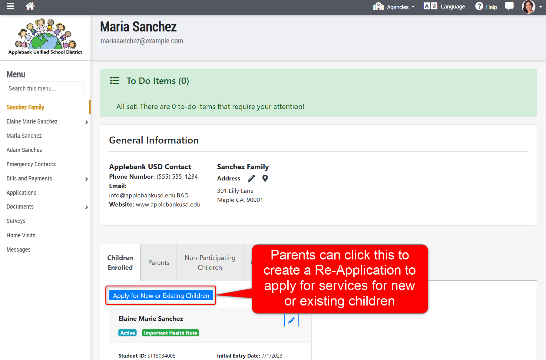 - Now, parents will be able to start a "Re-Application" in which every child in the family will be included, and the parent will be able to mark which child(ren) are applying for services in the family. This will ensure the family size is always counted correctly, and simplifies the re-application process from the parent's end.