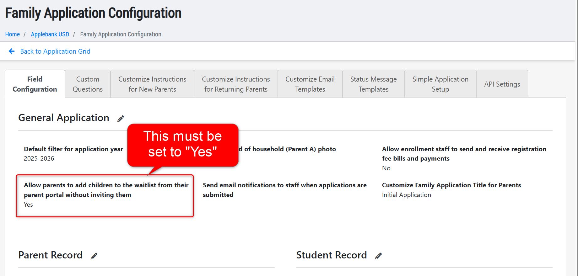 - Please note, this is a feature that must be enabled within the Family Application Configuration area titled "Allow parents to add children to the waitlist from their parent portal without inviting them."